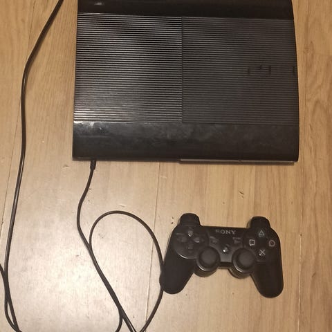 Konsoli on muuten hyväkuntoinen, mutta kaksi pohjan kulmissa olevista kumitassuista kuluneet irti (katso kuva "PS3 pohja").