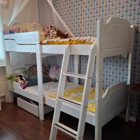 Liisa pieni kerrossänky 70cm*155cm.Tukeva ja laadukas .Sängyt voi erottaa erilliseksi vuoteiksi. Patjat saa halutessaan mukaan.