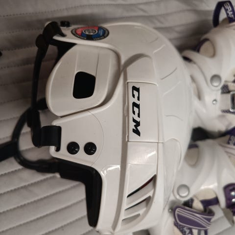 Prismasta aikoinaan ostettu, yhdellä lapsella ollut käytössä kolme talvea. Hyvässä kunnossa, ei kolhuja eikä halkeamia. Kypärän kokoa ei pysty säätämään, leukaremmin avulla saa sopivan tiukalle että on tukeva.