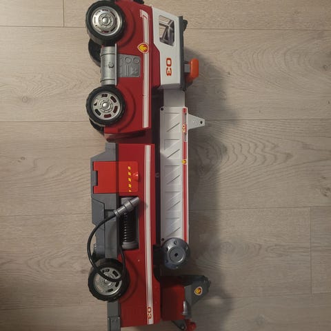Ryhmä Hau paloauto ja Samppa -hahmo. Sisältää punaisen paloauton sekä irrallisen Samppa -hahmon, joka on varustettu palomiehen asusteilla.