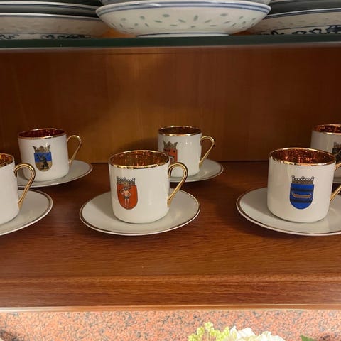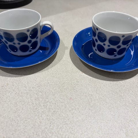 Myydään Arabian neljä (4) hyväkuntoista Siniviuhka kahvikuppia ja lautasta. Yhteishinta 20€.