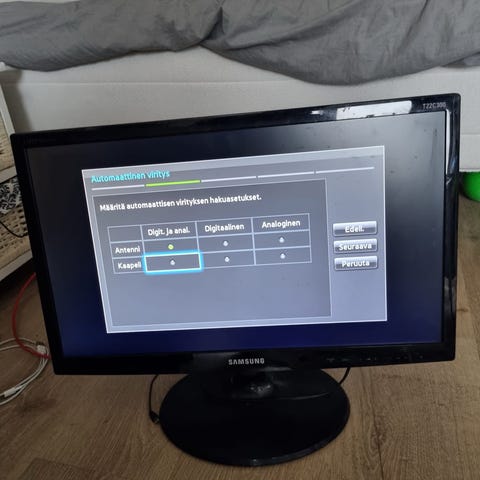 Samsung näyttö, musta väri. Liitännät: HDMI, VGA, DVI, komposiitti. Sopii yleiskäyttöön. Yhteismitat 63x73x14cm (korkeus/leveys/syvyys seinästä). Nouto Tonttilasta