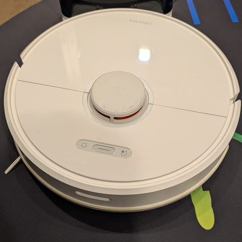 Imuriin vaihdettu lattiaharja, joka pitää hieman ääntä. Mukaan moppi + sen vesisäiliö, sekä latausasema.