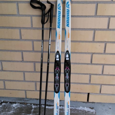 Myydään lasten sukset Karhu Feran 120 cm. Mukaan sauvat käyttäjän mukaan 100 tai 80 cm. SNS-siteet. Ei monoja.