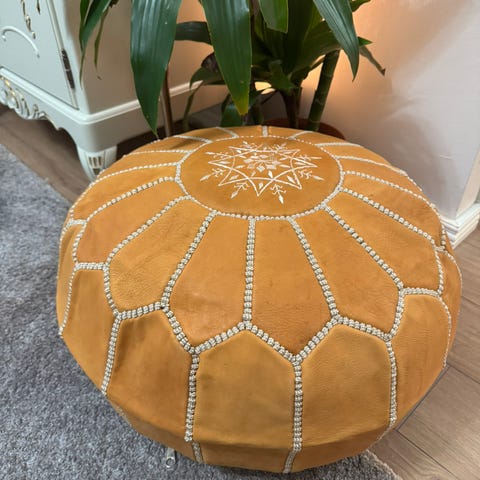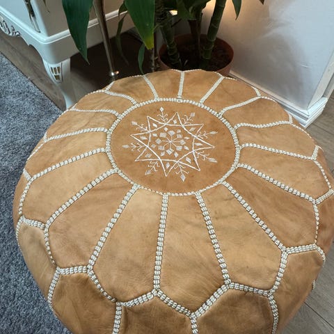 Voi käyttää sisustukseen tai kestää hyvin myös istumista. Tehty laadukkaasta aidosta nahasta käsityönä. Olen itse ollut suunnittelemassa ja valitsemassa värejä Marokossa.