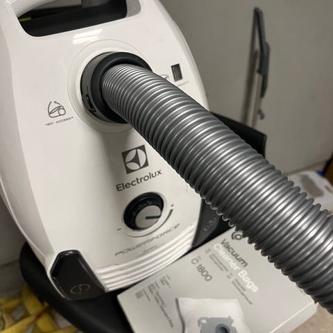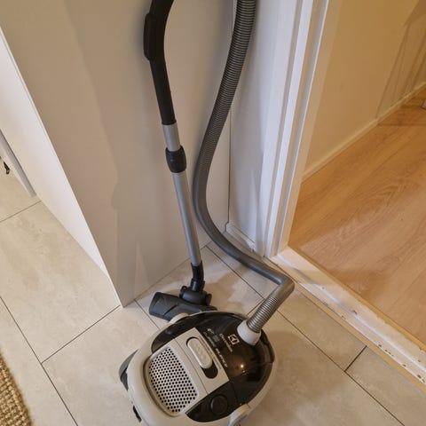 Electrolux pölynimuri. Paljon käytetty mutta edelleen hyvin toimiva. Varren liitoskohta hieman löystynyt ja irtoaa välillä esim nukkamattoa imuroidessa, ei ole haitannut käytössä kuitenkaan koska ei irtoile mitenkään jatkuvasti.