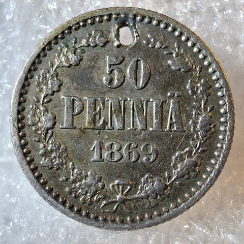 Kolikko raha hopea hopeaa numismatiikka keräily kotka suomi venäjä vintage antiikki lahjaidea