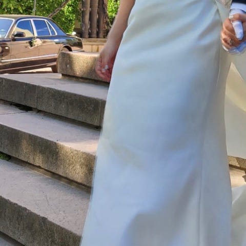 Jenny Packham norsunluu valkoinen silkkinen naisten mekko, koko 38. Mekossa on Swarowski kristallein korosteltu vyötärö ja pitkä helma. Materiaalina silkki ja organza.