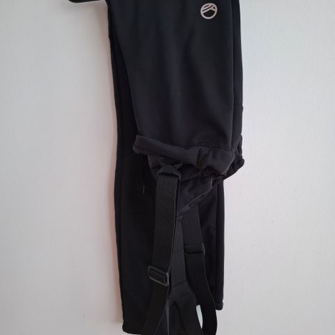 Halti hiihtohousut 140cm. Vetoketjut lahkeissa, henkselit. Edessä tuulen pitävää kangasta, talapuolella joustavampi.