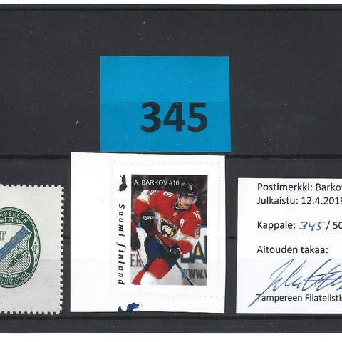 Aleksander Barkov ja stanley cup numeroitu postimerkkijulkaisu 2025. Merkin numero 276/600. Hinta 30 euroa. Nouto Pakilasta tai toimitus postissa 7 euroa.
