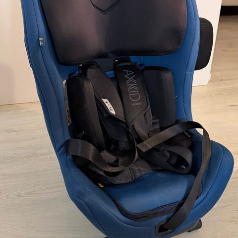 Axkid minikid 1 selkä menosuuntaan turvaistuin. Uutena ostettu vuonna -23, yhdellä lapsella ollut. Päälliset siistit ja ehjät, juuri pestyt. Ei kolaroitu.