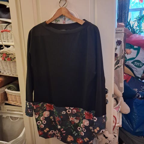 Collegekukkapusero. Koko L. Hihat rypytetty.
