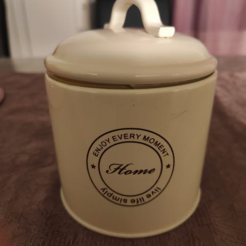Ruskea hillo/säilytyspurkki ja kansi, alareunassa pieni särö, näkyy kuvissa,muuten ehjä ja siisti kunto. Materiaali jotain keramiikkaa.