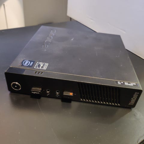 Lenovo ThinkCentre M92p työpöytätietokone. Se käynnistyy, mutta kiintolevyä ei ole. Kaikki muu on paikoillaan. Prosessori on i5, 4 Gt RAM-muistia on asennettuna. Varastossa 2 kpl