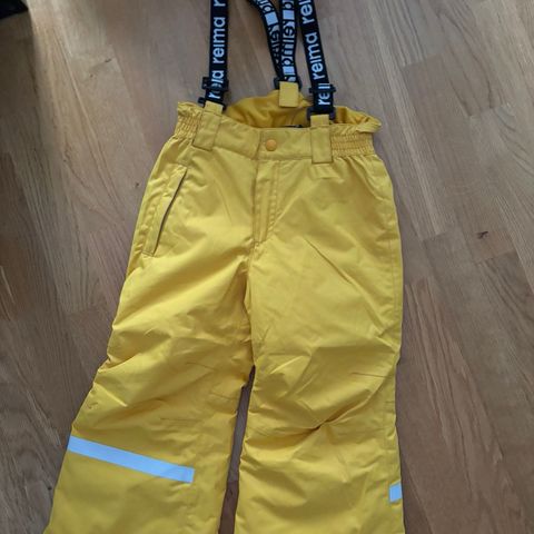 Kahdet Reima toppahousut. Ensimmäisessä kuvassa uudet Kiddo Lightning -malliset housut. Toiset siistissä käytetyssä kunnossa, hieman jo tavanomaista käytön jälkeä (ei henkseleitä). Hyvät kakkoshousut.
