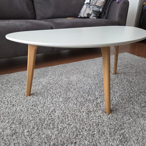 Sohvapöydän jalat oli omasta mielestä aika heikkoa tekoa, joten jalkojen kiinnityskohdat on vahvistettu pohjassa rakenneliimalla. Eli ei näy ulospäin, ellei käännä pöytää ympäri.