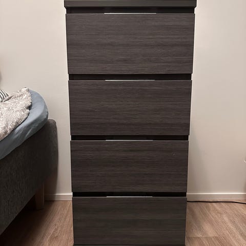 Harmaa askon lipasto. Käytön jälkiä on ja kuvissa näkyy naarmu ja rikkinäinen pintalasi, lasin voi toki itse korjaa tai vaihtaa.