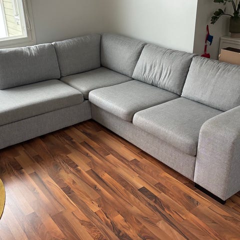 Askosta pari vuotta sitten ostettu tummanharmaa avokulmasohva. Leveys 272 cm, syvyys 220 cm. Irroitettavat ja konepesun kestävät päälliset. Nouto Nummenkylästä.