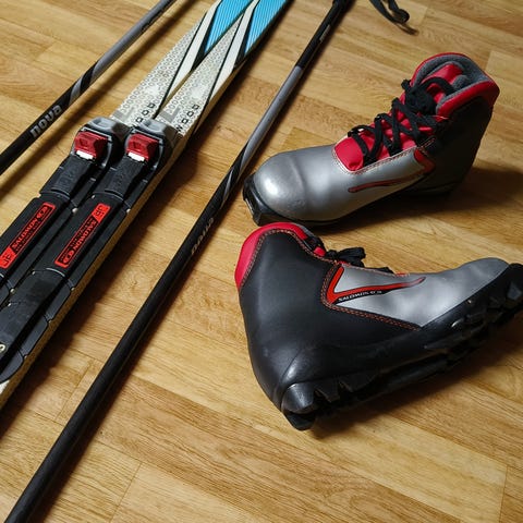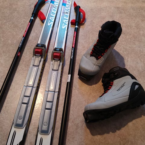Myydään käytetty suksipaketti lapselle perinteiseen hiihtoon. Kouluhiihto/koululiikunta/ päiväkoti hiihto.