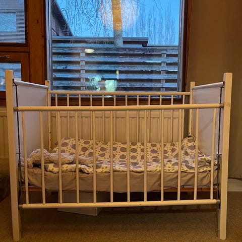 Patjan ja reunasuojuksen saa myös halutessaan mukaan. Patjan koko 106x60. Pesty vain hajusteettomilla pesuaineilla. Ei kotieläimiä.