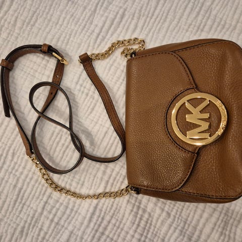 Myydään Michael Korsin ihana konjakin ruskea olkalaukku. Pehmeää nahkaa. Säädettävä olkahihna. Metalliosat hopeanvärisiä.