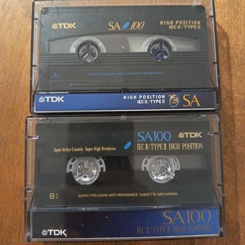 Avaamaton viiden kasetin pakkaus C-kasetteja.
