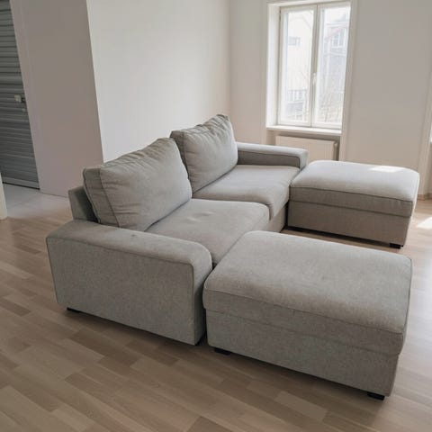 Myydään IKEA sohva ja rahi! Kaksi vuotta vanha ja kunto hyvä. Päälliset irroitettavat ja ne on juuri pesty.