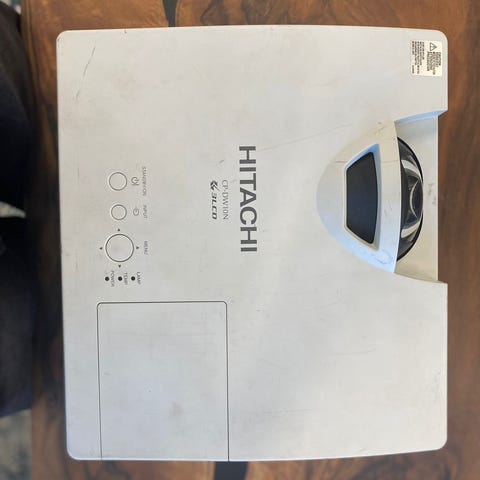 Hitachi CP-WX4022WN projektori, 3LCD-tekniikalla varustettu laite, joka soveltuu erilaisiin esityskäyttöihin. Projektori on valkoinen ja sisältää useita liitäntämahdollisuuksia, kuten VGA, HDMI ja AV. Laitteessa on ohjauspainikkeet ja se on suunniteltu kiinteään asennukseen.