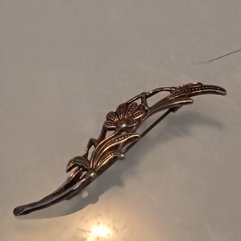 Modernistinen kaunis rintaneula, musta/punainen emali, hopeamerkintä. 46mm x 18mm.