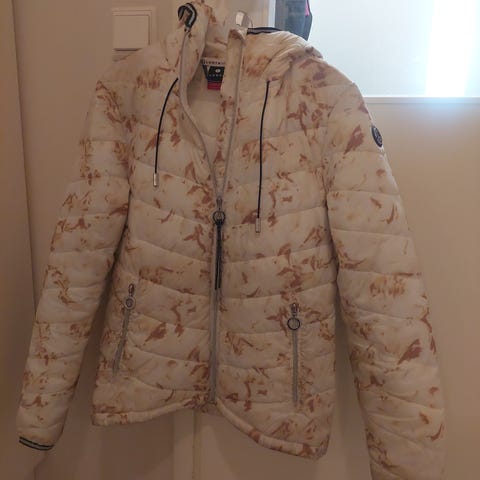 Myytävänä oikein siistikuntoinen Luhdan kukkakuosinen kevyttoppatakki kokoa L. Kainalo-kainalo mitta 52cm.
