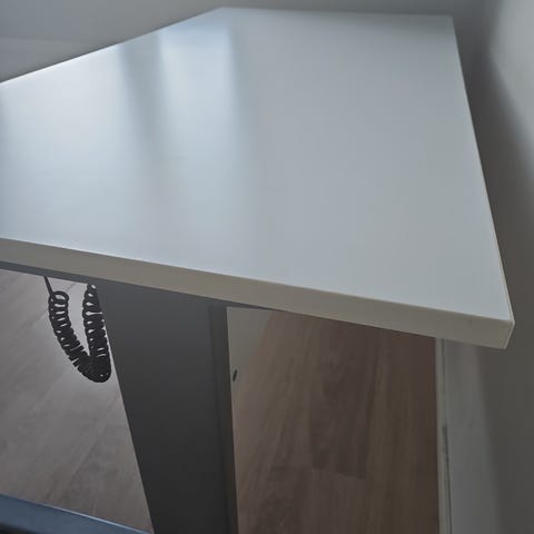 Pienikokoinen linakin valmistamilla jaloilla oleva pöytä. Pöytiä on kaksi ja toinen on 100x70 ja toinen 100x80cm kannella. Molemmissa jaloissa oma moottori. Alimmillaan 67cm kannen yläreunasta ja ylimmillään 130cm.