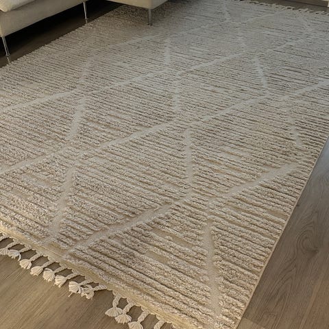 K/M Designer Rug Collection Phantom Lux matto, koko 200x290 cm, beige väri. Materiaalina polyesteri. Matto on suunniteltu sisäkäyttöön ja siinä on geometrinen kuviointi.