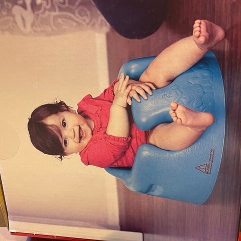 Hyvässä kunnossa oleva bumbo sitteri turvavöillä. Kätevä ottaa mukaan mm. uimahalliin suihkutiloihin.