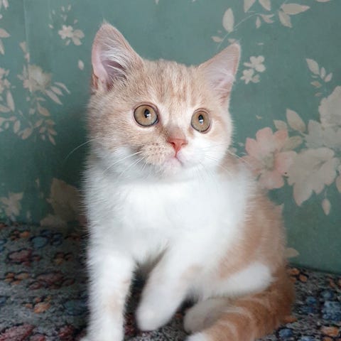 Hän väriltään creme bicolour pentu . Hän lempeä, rauhallinen, leikisä ja sosiaalinen kissanpentu.