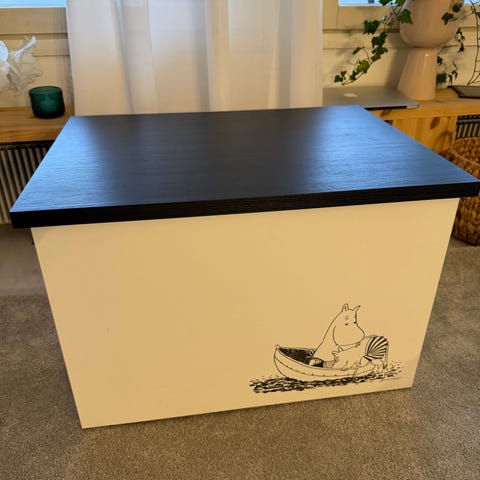 Muumi lasten pieni säilytyslaatikko, valmistettu puusta ja maalattu vaaleanpunaiseksi. Kotelo on suunniteltu lasten käyttöön ja se soveltuu pienten tavaroiden säilytykseen. Kotelo on tilava ja siinä on kansi. Itse tuunattu. Muumihahmot liimattu kotelon päälle. Korkeus 11cm (muumien kanssa 17,5cm), leveys 16cm, syvyys 11cm. Nouto tai postitus.