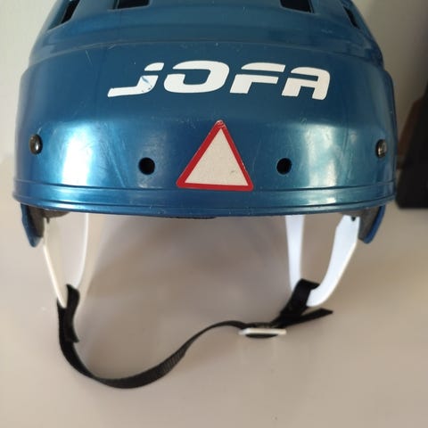Lasten luistelukypärä, koko 51,5-55,5. Säilytetty ulkovarastossa.