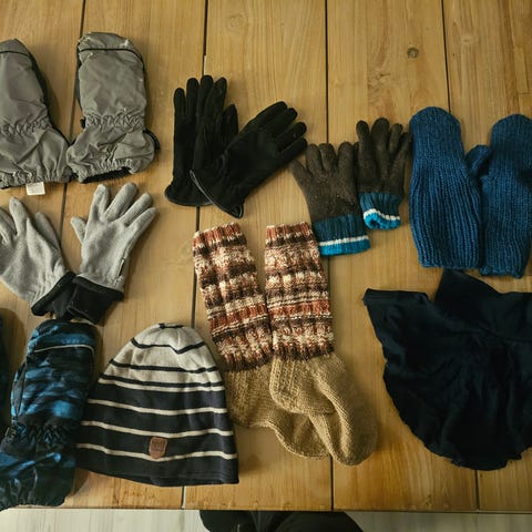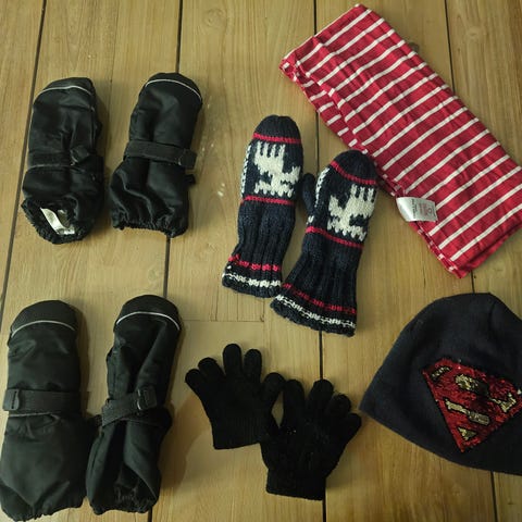 Myydään ulkovaatepaketti, joka sopii 4-5 vuotiaalle. Paketissa aidot nahkarukkaset, joissa korjattavissa oleva pieni reikä, mikä näkyy kuvassa. Pakettiin sisältyy myös kurahanskat, kudottuja villasukkia ja hanskoja välikauteen. Merkkeinä mm. Reima ja Bogi.