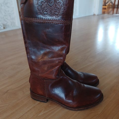 Myydään Kavat ruskeat nahkasaappaat, sisäsyrjässä vetoketju, koko 30 (pohjallisen kokopituus 19,5cm), hyväkuntoiset.