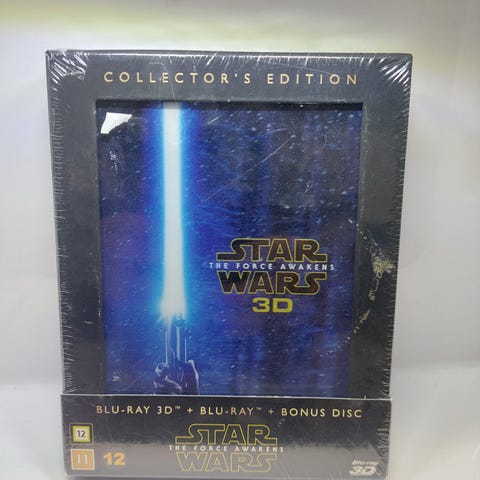 Myydään Star Wars The Force Awakens 3D Collector's Edition. Sisältää 3D Blu-ray-levyn, tavallisen Blu-ray-levyn ja bonusmateriaali Blu-ray-levyn. Levyt erinomaisessa kunnossa.