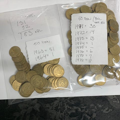 Kuvan 50 pennin kolikot 1990-luvulta