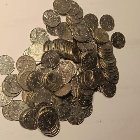 50 pennin kolikoita 1990-luvulta