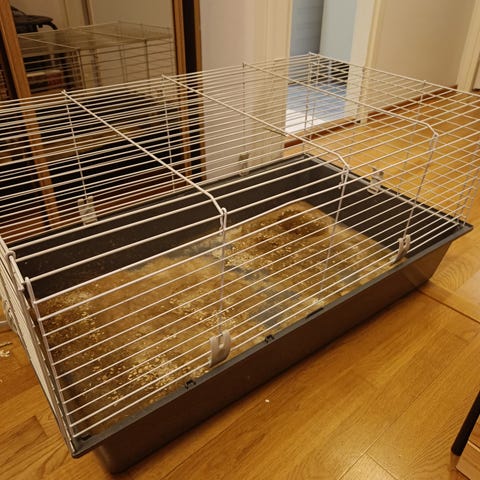 Häkkiä on pidetty pöydän päällä, sisätiloissa.