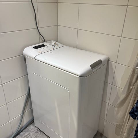 Vanha, mutta täysin toimiva ja siistikuntoinen pyykinpesukone pojan opiskelija-asunnon tyhjennyksestä.