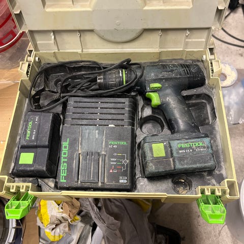 Festool PS 300 EQ puukkosaha, sähköllä toimiva työkalu, jossa on musta ja vihreä kahva. Soveltuu puun ja muiden materiaalien sahaamiseen tarkasti ja tehokkaasti.