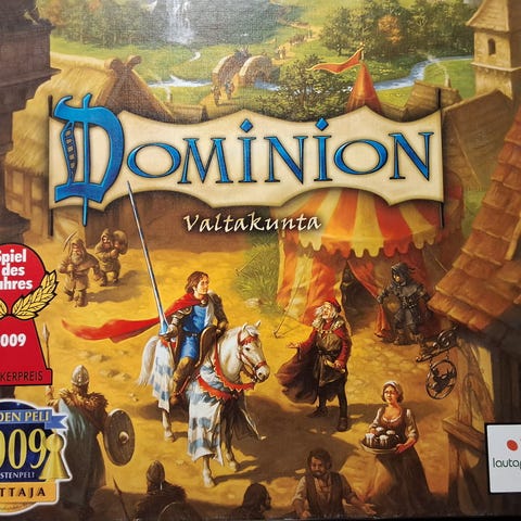 Dominion lautapeli. Hyvässä kunnossa. Ilmoituksen tekohetkellä laskettu kaikki kortit ja jokainen tallessa.
