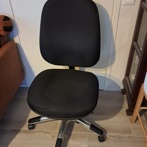 Valkoinen jyskin toimistotuoli, jossa säädettävä korkeus ja rullat