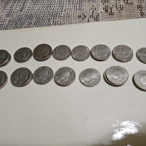 5 kruunun kolikko v.1978 ja 1 kruunun kolikot 1973 2 kpl, 1977,1979, 1990 ja 1993