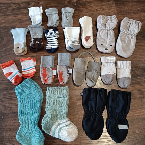 Mukaan lukien sukkia, hattuja,hanskoja, erilaisia vatteita