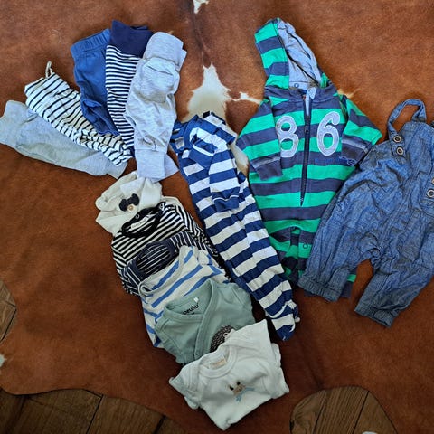 50-80 väliltä erikokoisia lasten vaatteita.