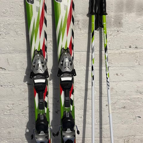 Elan laskettelusukset siteineen, ja sauvat saa myös mukaan.